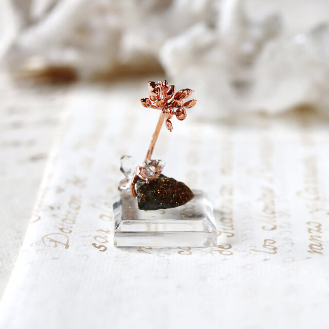 銅化した本物の植物と鉱物を使ったアートオブジェ。