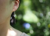スラッと伸びるシルバーチェーンと合わせ、スタイリッシュなアメリカンピアスに仕立てました。