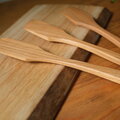 サクラ材を使って、木べらを制作しました。柄は短めで小回りがきき、小鍋で調理をするときにも使いやすいサイズです。