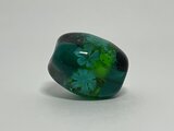 エメラルドグリーンの中央に黄緑色のガラスをおき
