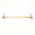 輪っか金具に枝流木を差し込み、両端の止めに 少し太い枝流木の輪切りを使用した、かわいいタオル掛けです。輪っか内で枝流木はまわります。