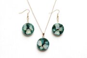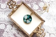 緑と白の二色が織りなす、月面の模様を思わせるデザインが優雅でクラシカルなペンダント。
