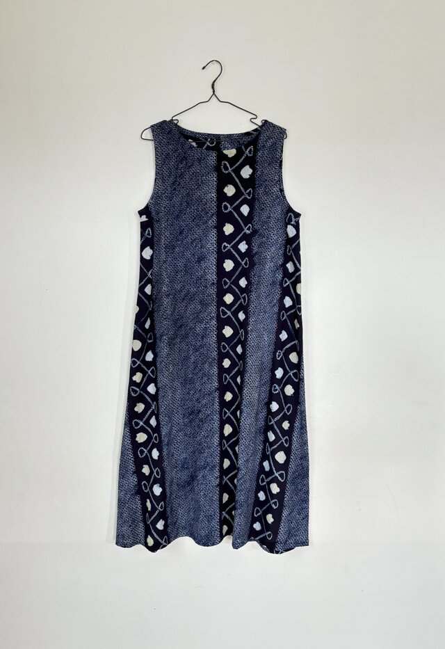 *アンティーク浴衣*抽象模様有松鳴海絞りのワンピース(Lサイズ)
