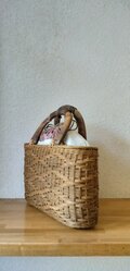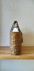 北海道 十勝バスケット ボトルホルダーこのたびは素敵なバスケットをありがとうございました。お花を買いにいくときのバスケットが欲しいと思って注文させて頂きまして、早速使ってみましたところ、ピッタリ!でした。 写真は中にお水を少し入れたプラスチックのボトルを入れて、お店で切花をストンと入れて頂いたところです。 お花を買うたび包装紙のゴミが出るのが気になっていましたがゴミもなくなり、ずっと素敵に持ち歩けるので大満足です。
