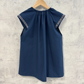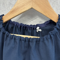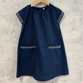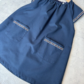 【S〜LL】大人用スモック ③ホワイト 花柄 リボンライン×ネイビー 半袖 スモック ショート袖