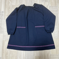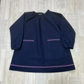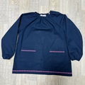 【80~160】⑦レッド 花柄 リボンライン ネイビー 長袖スモック 着丈延長可 スモッグ