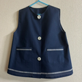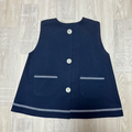 【80~160】ギンガムチェック リボンライン ネイビー 前ボタン 袖なしスモック 着丈延長可 スモッグ