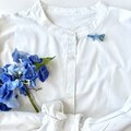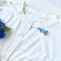 とてもとても素敵なブローチです。青、紺色系の服につけようと購入しましたが、ブローチに使われている数種類の青が美しく馴染みます。そして少し神秘的。 物語のようなブローチの名前にも引き込まれました。 素敵なブローチをありがとうございました。