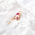ピーチピンクの干渉色が美しいペタルパールと、ルビーの鮮やかな彩りが胸元で静かに咲きます。
