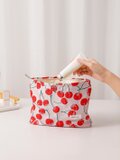 【新作】 ジャガード織り 夏 さくらんぼ チェリー ピンク 大きめ コスメポーチ 化粧ポーチ おむつポーチ