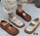 【受注製作】丸トウパンプス シューズ 透かし加工 手製牛革レザー MP68