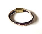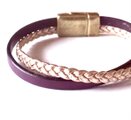 【ヨーロッパ製本革 濃紫・三つ編み ローズゴールド 二連ブレスレット②】マグネット留め