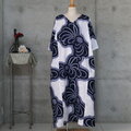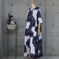 有松絞りのワンピース 紺白 Aライン フリーサイズ ゆったり目 着物リメイク