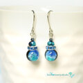 ブラックのベースに銀箔を重ね、その上からブルーグリーン〜ブルーのガラスを重ねてつくられた一粒。