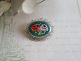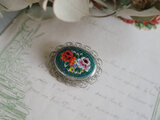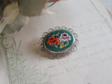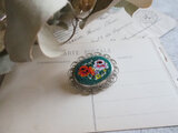 アクアグリーンの色をした、マイクロモザイクガラスのブローチです。