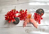 贅沢なひとときを演出する「糸菊と紅鶴」の髪飾りで、特別な日の思い出に彩りを添得る事でしょう。