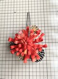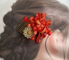 メインの髪飾りは朱色のグラデーションの生地で製作しました。