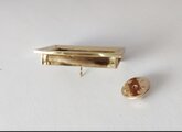 <キャッチの外し方>キャッチの左右に付いているつまみを内側に押しながらピンを抜きます。