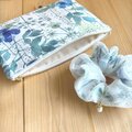 リバティ シュシュチャーム付き フラットポーチ ポケットあり <Irma>(イルマ)ブルー