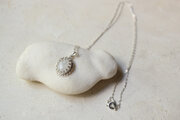 レース調の覆輪でハイアライトオパールの石を留めました。