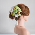 ⋆11点set⋆ グリーンホワイト:ラナンキュラス・ローズ・マム 和風髪飾り《ワイヤー入りピック》