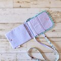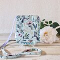 ハチドリが花畑の中を飛び回る姿が愛らしいUSA生地を使用したスマホショルダー(サコッシュ)です。