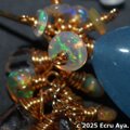 この仔をワイヤーで留めた時に、二種類のエチオピア産プレシャスオパールのロンデルを通しました