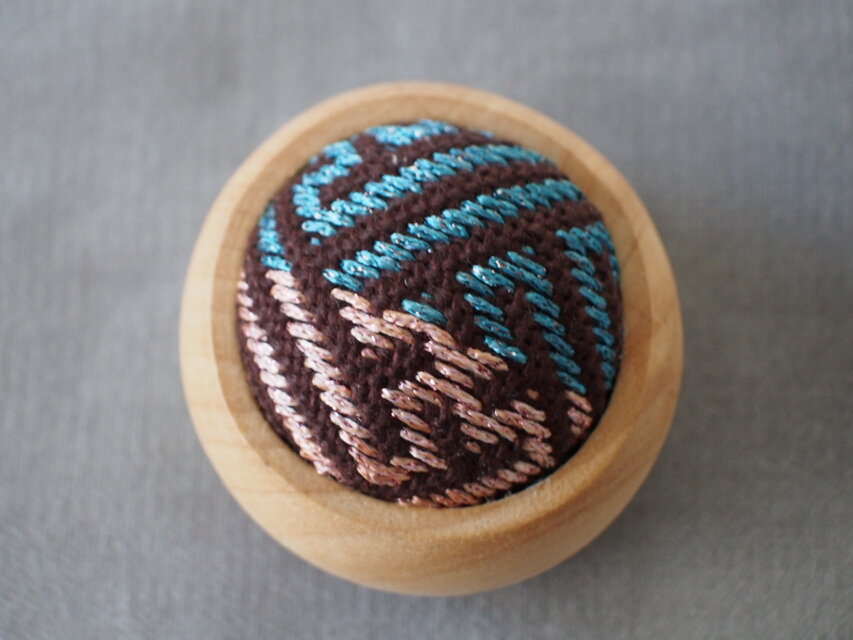 手刺繍 こぎん刺し ウッドボウルのピンクッション にしきいと cosmo