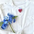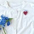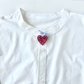 ハートは中央の部分には、艶のある赤い糸を使用しました。赤いガラスビーズを少しずつ散りばめてあります。