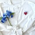 サイトの写真よりなお美しいブローチが届きました!白なのに光でさまざまな色が差し、季節を問わずどんな服にも映えそうです。 包装もとても丁寧で、作品への愛と購入者への心遣いが溢れており、とても幸せな気持ちになりました。 素敵な作品をありがとうございました!きっとまたご縁がつながる気がします。