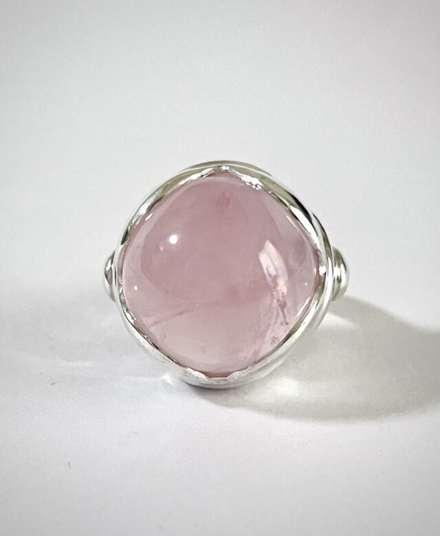 ブラジル産の天然ローズクォーツクォーツの原石を研磨して作った指輪です。