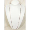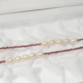 真珠光沢が綺麗な小粒の本真珠(淡水パール、セミバロック)と、輝きの綺麗な多面カットのロードライトガーネットのロングネックレスです。