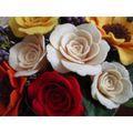 赤やクリーム色の薔薇、黄色・橙色の向日葵、夏色小花を添えて、