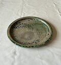 緑釉と鉱物を焼成する事による化学変化を景色にしています。