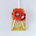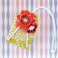 柳色の和柄の生地に赤い花をあわせることで夏祭りのような賑やかでかわいいお守り袋になりました