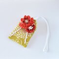 素敵なお守り袋が2つ届きました。 絞りの生地の色合いと大輪の花がとても華やかでキュートです。 白梅のものは、奥ゆかしさと気品を感じました。 どちらも大変気に入りました。大切に使わせていただきます♪