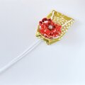 花の部分には赤い花で華やかさを演出しました。花は江戸時代から続く「つまみ細工」の技法を用い、花びら一枚一枚を丹念に作っています