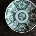 花と入子菱◆緑で素敵。印判小皿 骨董・antiques 古道具 古民家 丁寧な暮らしに。明治期〜大正期