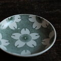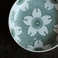 桜と入子菱◆緑で素敵。印判小皿 骨董・antiques 古道具 古民家 丁寧な暮らしに。明治期〜大正期
