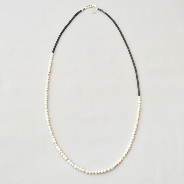 ベビーパールの純白の光沢とヘマタイトの硬質なダークグレーの