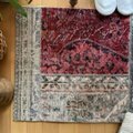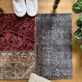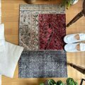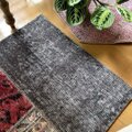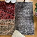 55×86 パッチワーク グレイボタニカル 深み赤 トルコヴィンテージラグ