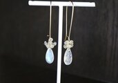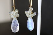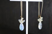 大粒のレインボームーンストーンと小さなレインボームーンストーンを房のようにあしらったロングのピアスです
