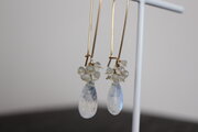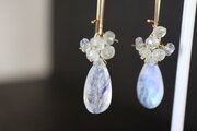 レインボームーンストーンのクラスター ロングゴールドピアス/イヤリング 14kgf