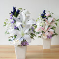 花器付き仏花 白ユリ・菊・胡蝶蘭・りんどう(造花)