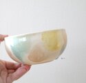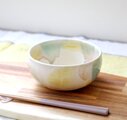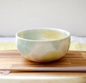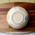 ほんのり生成色のマット釉と、春の色彩を思わせる三色の釉薬。