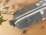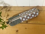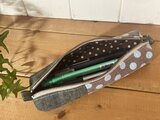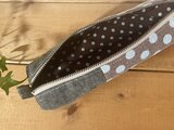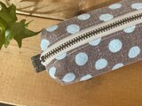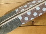 コットンリネン*ドットプリント*スリムペンケース*ソフトタイプ*グリーン×ブラウン×サックスブルー♪