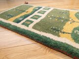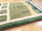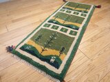 緑を主体に、3つの風景画を描いた、おしゃれなギャッベです。