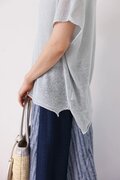 夏も冬も快適!立体編みのリネンコットンニットプルオーバー 薄い水色 250703-2