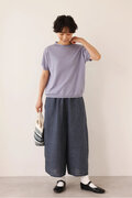 夏の定番に!涼やか着回しニット リネン コットン半袖トップス 明るく渋い青紫色 250704-4