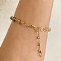 ブルーとブラウン、ホワイトが大人っぽい、小さめチェコガラスとチェーンのブレスレット No.C843